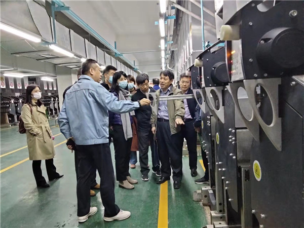 隨后,在陳董事長的陪同下,中石化集團高級專家組一行參觀了工廠相關(guān)裝置、質(zhì)量檢驗等部,了解再生滌綸從瓶片投料、造粒到紡絲、加彈的全過程,并對公司新投巴馬格紡絲和加彈設(shè)備生產(chǎn)情況和產(chǎn)品質(zhì)量表示了肯定。